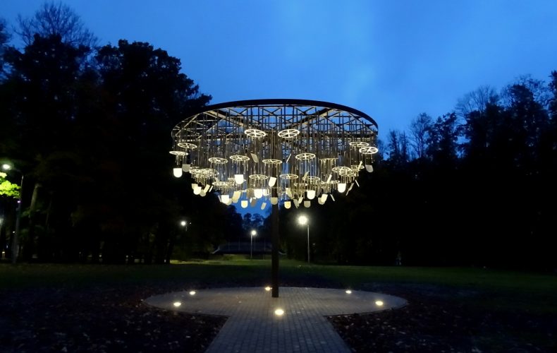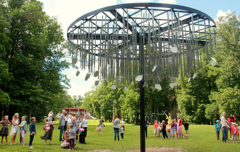 Environmental object “Air” – a symbolic wind chime tree that makes music with wind pipes in response to air movement. The environmental object designed by architect Didžis Jaunzems is located in Balvi City Park and was inaugurated on 5 August 2017.