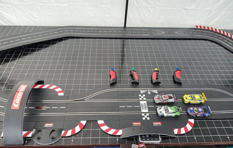 1) Driving around the track in radio-controlled Carrera race cars, digitally recording the number of laps driven, the time taken for each lap, the time spent in the pit-stop and the number of times and sections of the track. The track is equipped with digitally switchable track transitions, lane changes and lane narrowings to create a thrilling and exciting feeling for the rider. The total length of the track is approximately 8 metres. Maximum number of riders – 3 persons.
