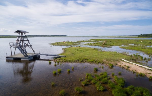 To make the birds and the beautiful landscape of Lake Engure more visible to visitors of the nature park, a bird observation tower has been built by the lake (or rather, on pontoons in the lake). A trail leads to the tower through the lakeside pastures of horses and cows, which means you have to walk past the animals, so be careful.