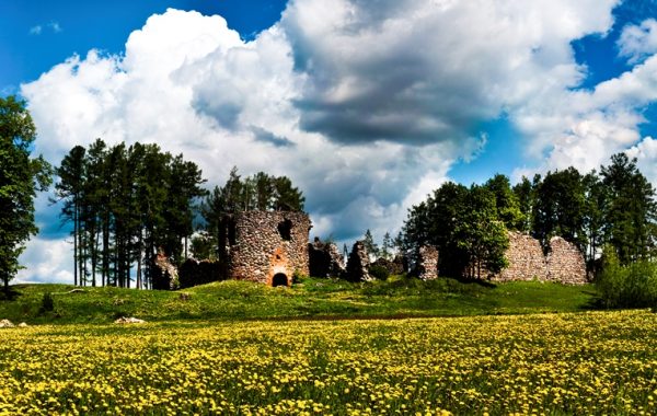 The ruins of Erģeme are a national historical and archaeological monument. It was built around 1320. The castle was built of local rubble, brick and lime mortar. The outer wall of the castle consists of regular square walls, each 70 m long. The castle is a monastic castle with two large fortification towers. The castle is surrounded by moats filled with water. A drawbridge connected the front to the central part.
