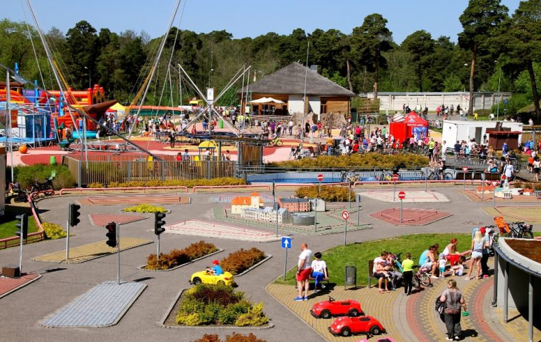 The attraction is suitable for children from 3 years of age with a weight limit of up to 50 kg. It is set in a 912 m2 square in the Ventspils street grid with buildings typical of Ventspils. The playground is equipped with traffic lights and road signs and can be used by 12 electric cars at the same time.